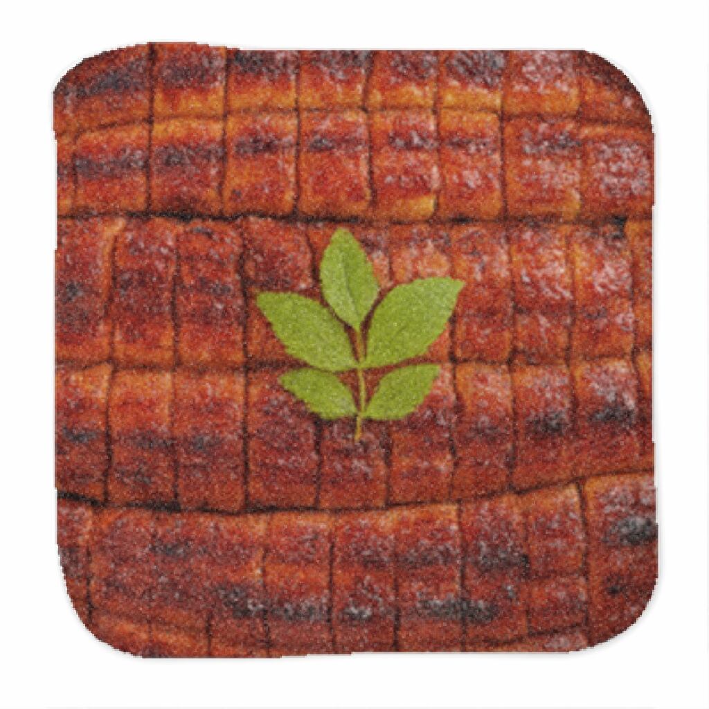 香ばしく焼かれたウナギに照りツヤのタレ、そして中央の緑葉までしっかり再現。見た目はまるで本物のひつまぶしですが――カロリーゼロ、やけどもゼロ。手や顔を拭いても安心です。