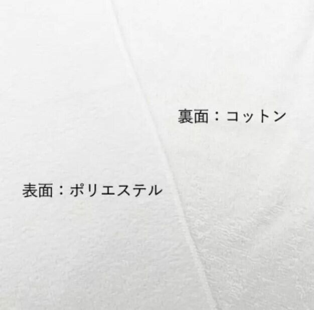 表面はプリントが映えるポリエステル生地、裏面は吸水力バツグンのコットン。